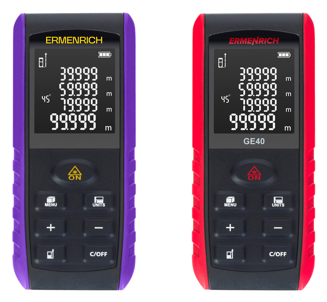 El medidor láser Ermenrich Reel PRO GE40 es una herramienta práctica y multifuncional para trabajos de construcción, reparación e ingeniería. Con la ayuda de este instrumento, puede medir distancias dentro de un radio de 40 metros, así como calcular áreas, volúmenes y ángulos. Cuando necesite hacer mediciones en condiciones difíciles, puede usar el teorema de Pitágoras para calcular la distancia a partir de mediciones intermedias.