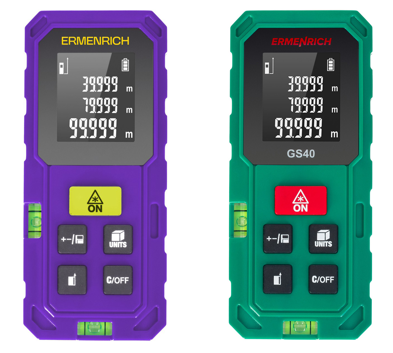 El medidor láser Ermenrich Reel PLUS GS40 es un instrumento versátil para tareas de reparación y construcción; es compacto y práctico gracias a sus controles simples y diversas funciones útiles. El dispositivo le permite medir distancias con precisión, incluso en condiciones difíciles cuando no sea posible dirigir el láser hacia el punto deseado siguiendo la línea visual directa. Para tales mediciones, se utiliza el teorema de Pitágoras, que permite calcular la distancia mediante mediciones indirectas.